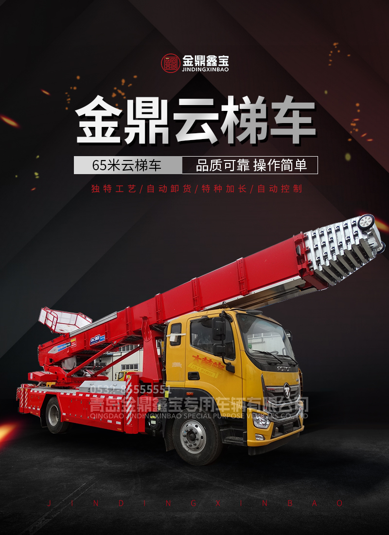 作業(yè)范圍可達(dá)65米高,青島金鼎鑫寶云梯車整體采用韓國原裝進(jìn)口梯臂,最大承載物重量450公斤。